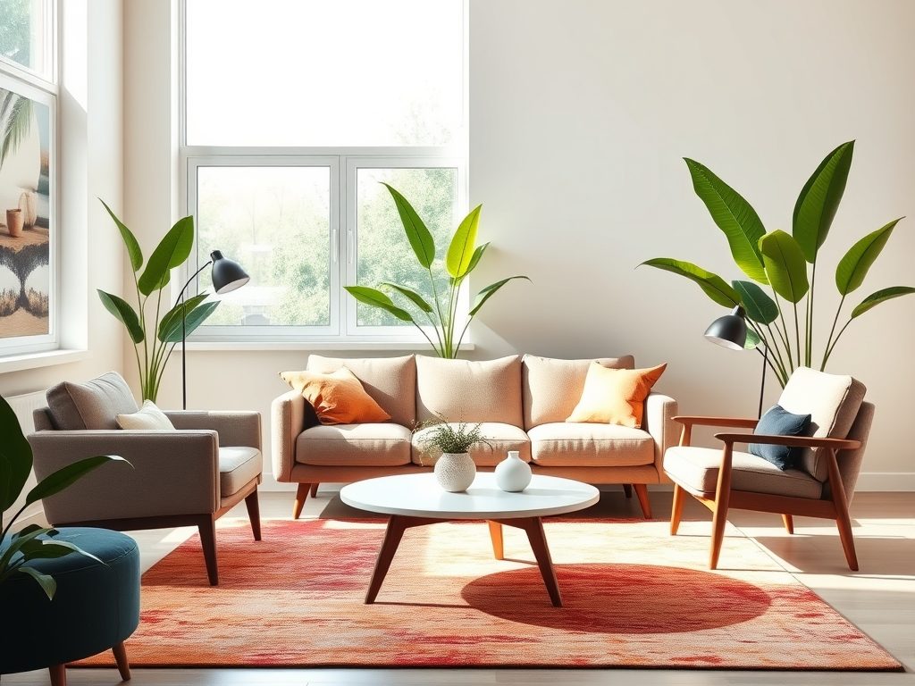 Aranżacja przestrzeni z meblami mid-century modern podkreślająca design i użyteczność